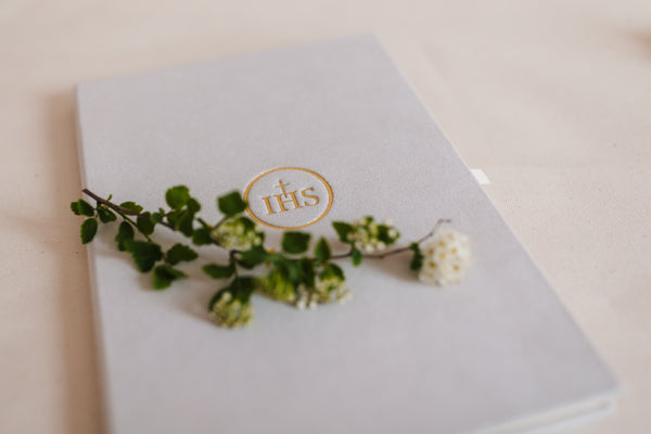 Oprawa wykonana jest z wyjątkowo trwałych materiałów, w kolorze ecovelvet cream ze złotą matrycą "IHS"